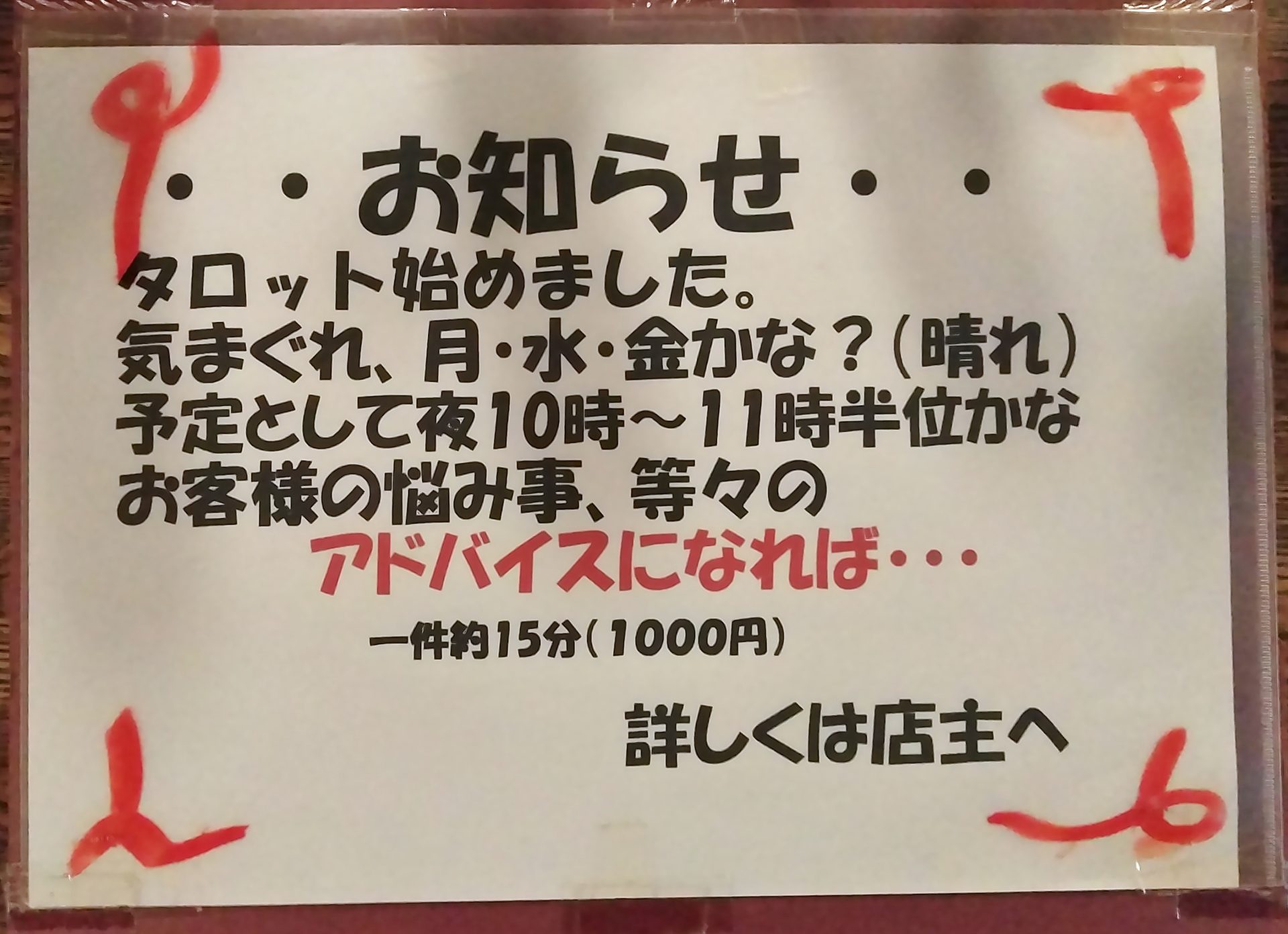 | 営業時間 | 12:00 - 16:00 18:00 - 25:00 祝・土のみ24:00まで 日曜日定休 |